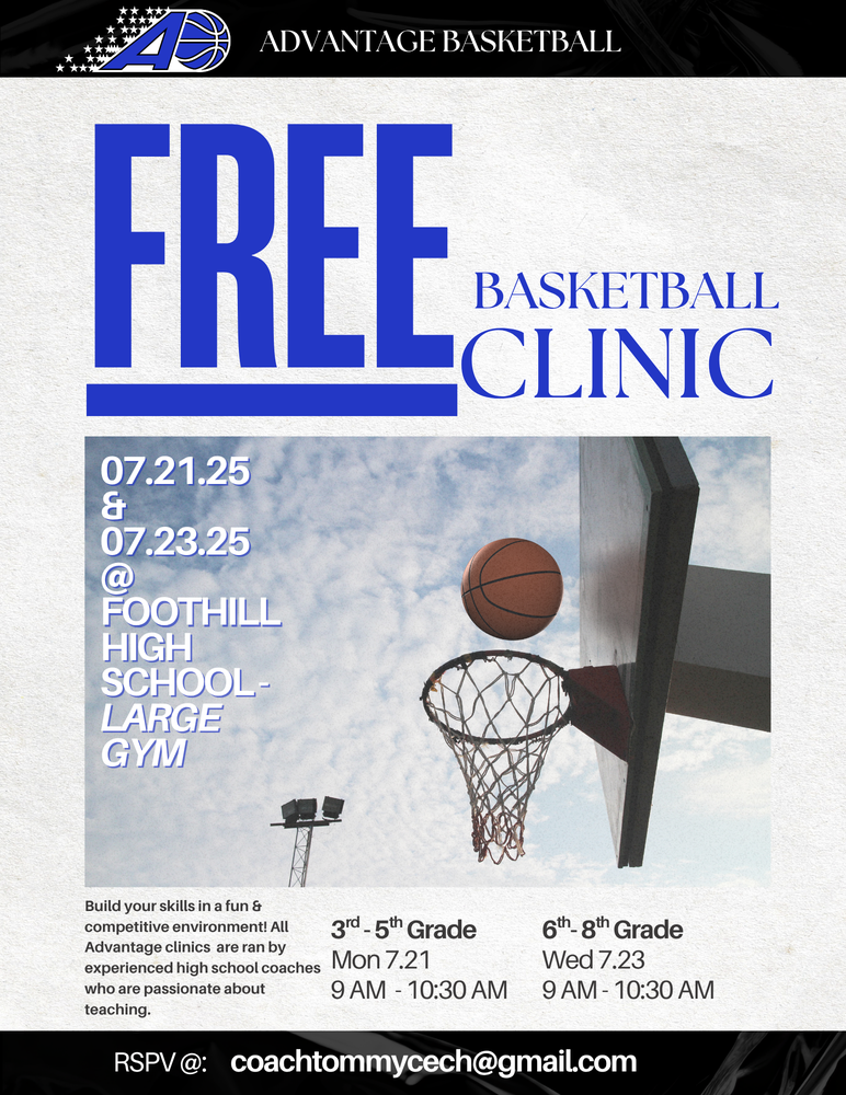 Clinic 2 - 6th-8th Grade - 7/23 9am-10:30am @ Foothill High School Main Gym